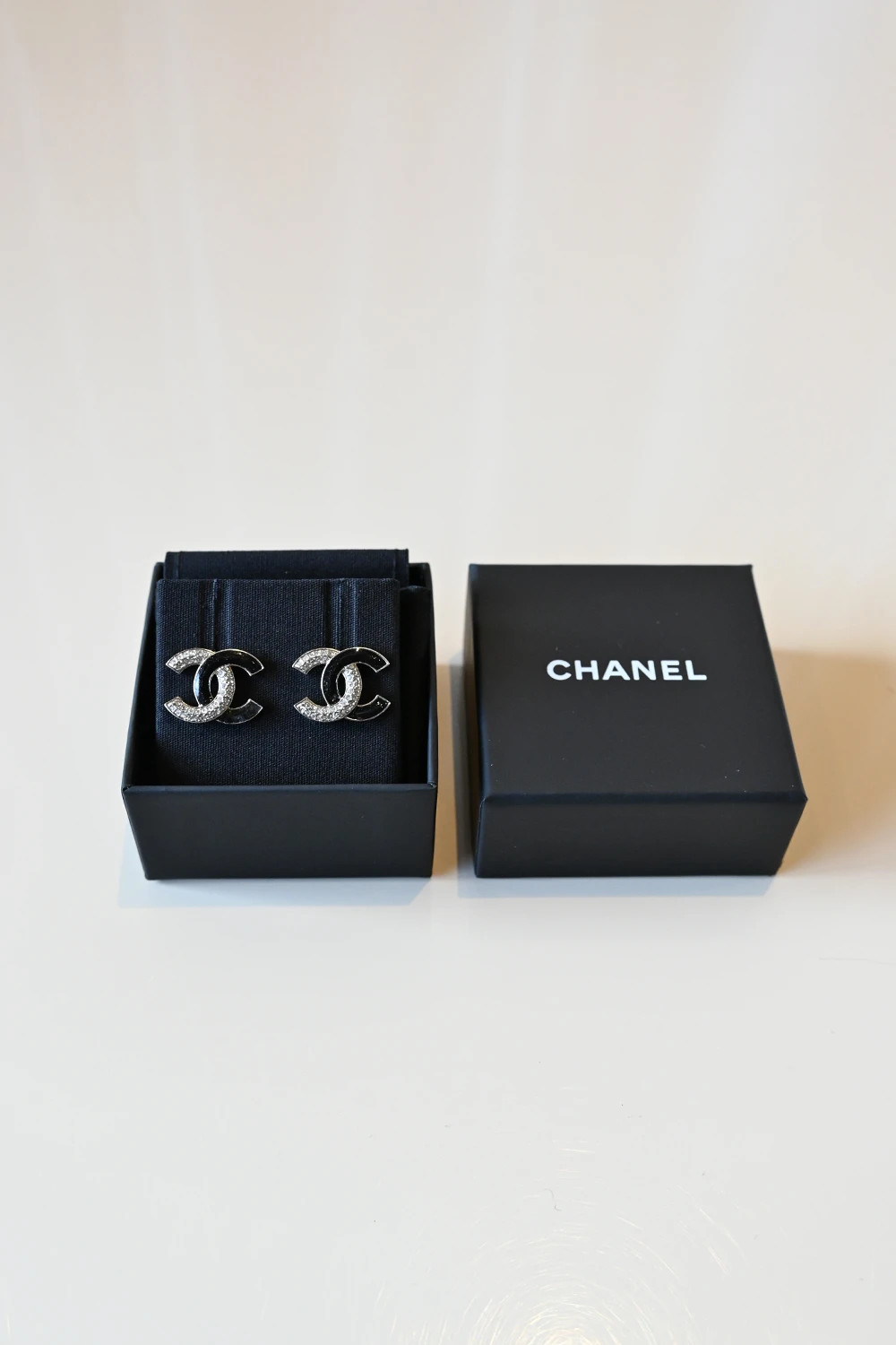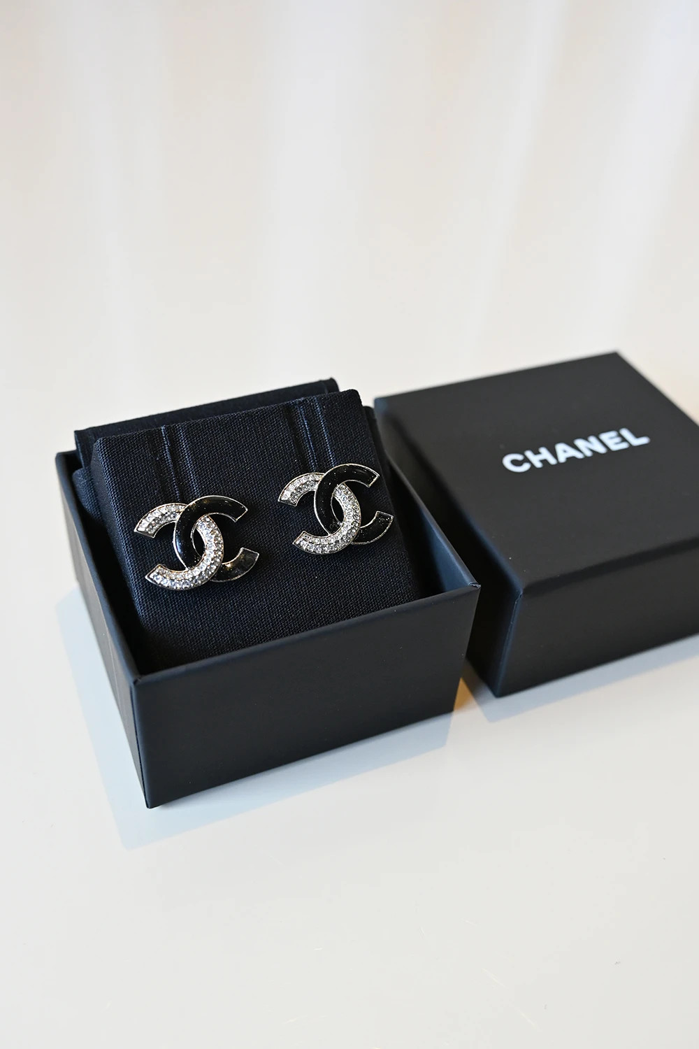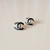Chanel CC stud earrings black crystals | A23 B
